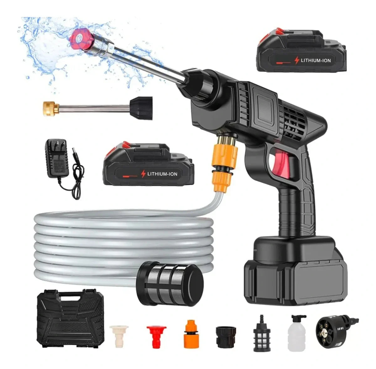 🔋 Doble batería para mayor autonomía 💦 Seis tipos de chorro (puntual, abanico, espuma, etc.) 🚿 Potencia suficiente para superficies difíciles 🛠️ Compacta y portátil — no depende de cables 🧽 Ideal para autos, pisos, paredes, equipos de exterior 🔧 Ajuste fácil de boquilla para distintos trabajos