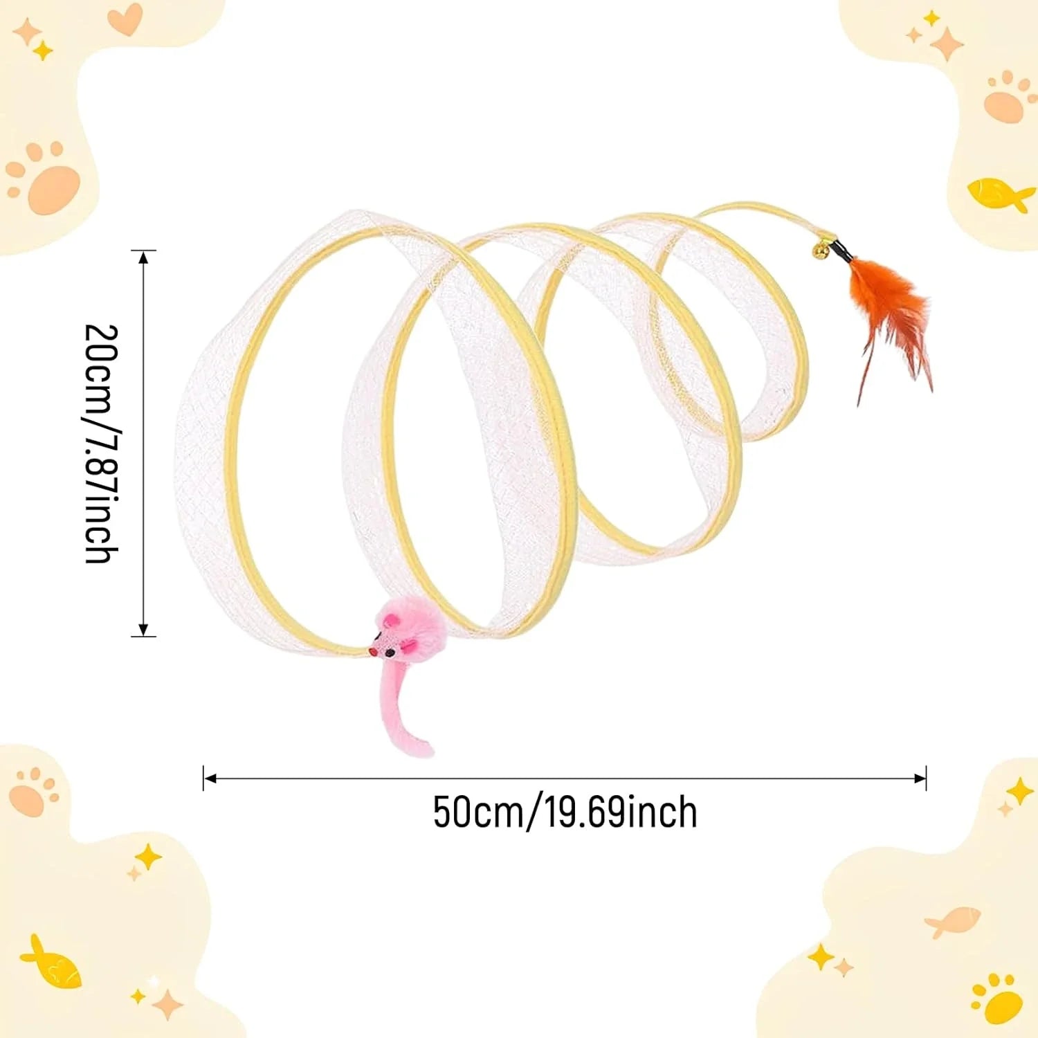 📏 Fácil de plegar y guardar cuando no se usa 🧵 Material de malla elástica que resiste arañazos 🧱 Estructura de alambre que mantiene la forma 🔔 Incluye juguetes internos (campana, ratones) para motivar el juego 🐾 Compatible con gatos, gatitos y mascotas pequeñas 🎁 Perfecto como regalo para los amantes de mascotas